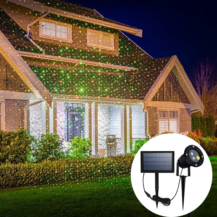 Promo LED Solar Outdoor Waterproof Red and Green Sky Star Show Laser Projector lamp Home Garden Christmas