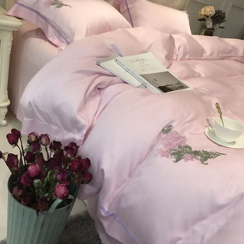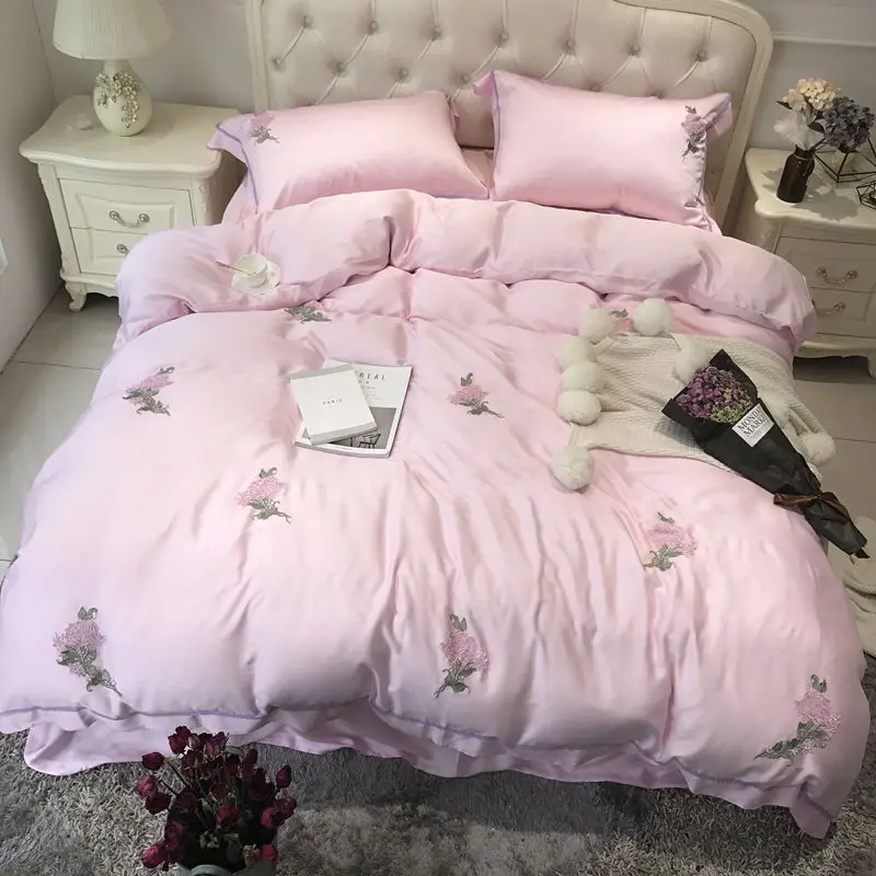 New 4/5pcs Luxury Tencel Embroidered Garden of dreams Bedding Set Silky smooth Duvet cover set Bedsheet
