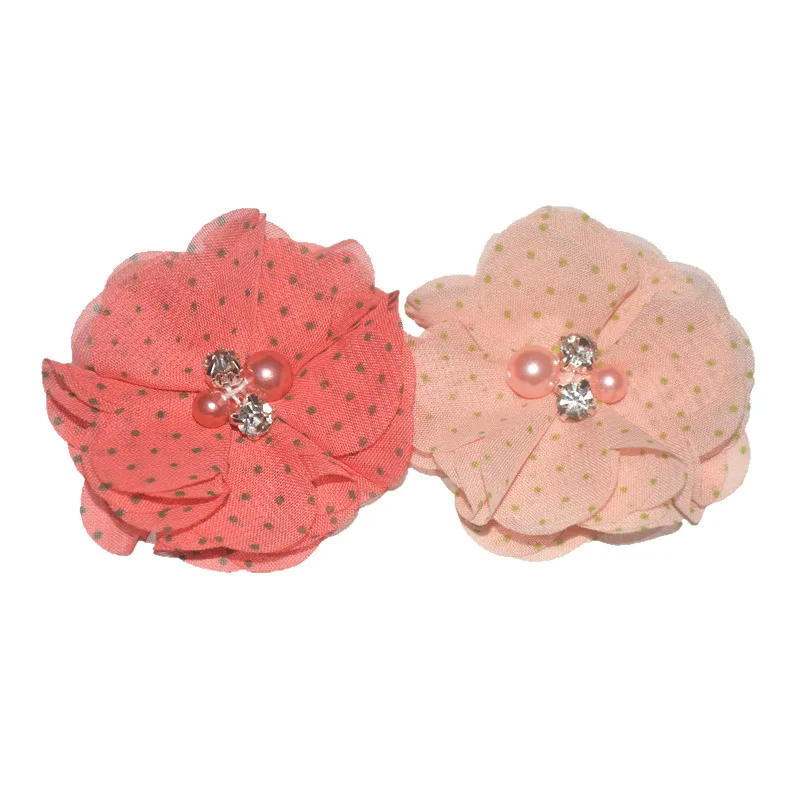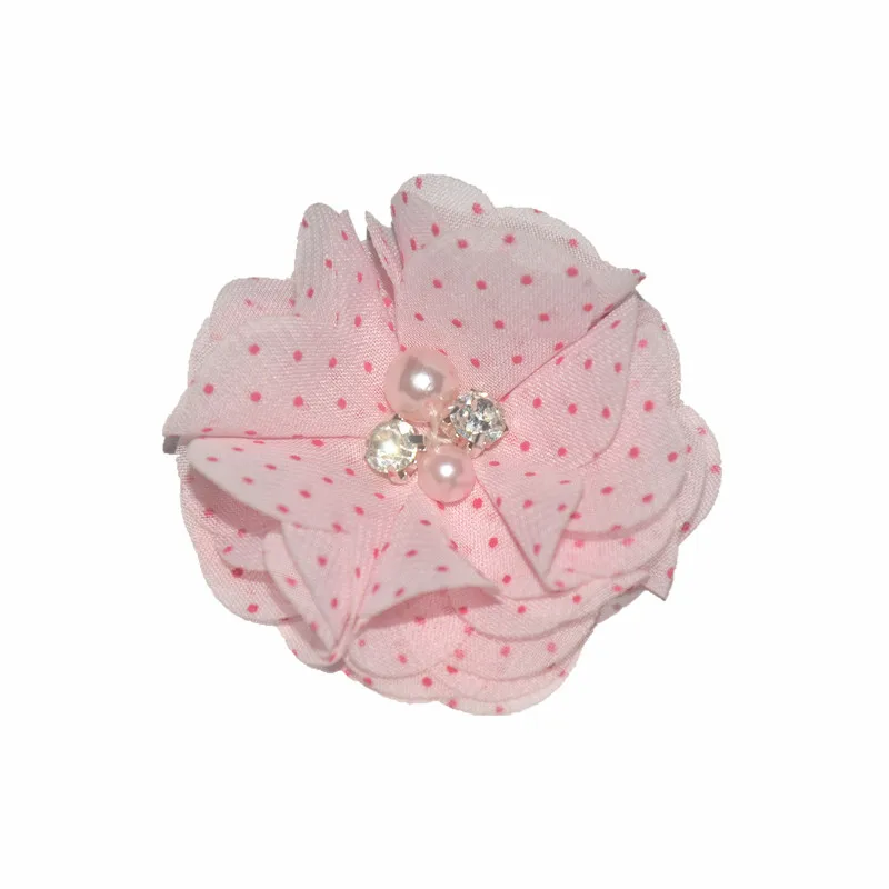 Best 30 pcs/ lot 5.5 cm chiffon flower with pearl and rhinestone shabby chiffon flower for apparel hair accessories headwear