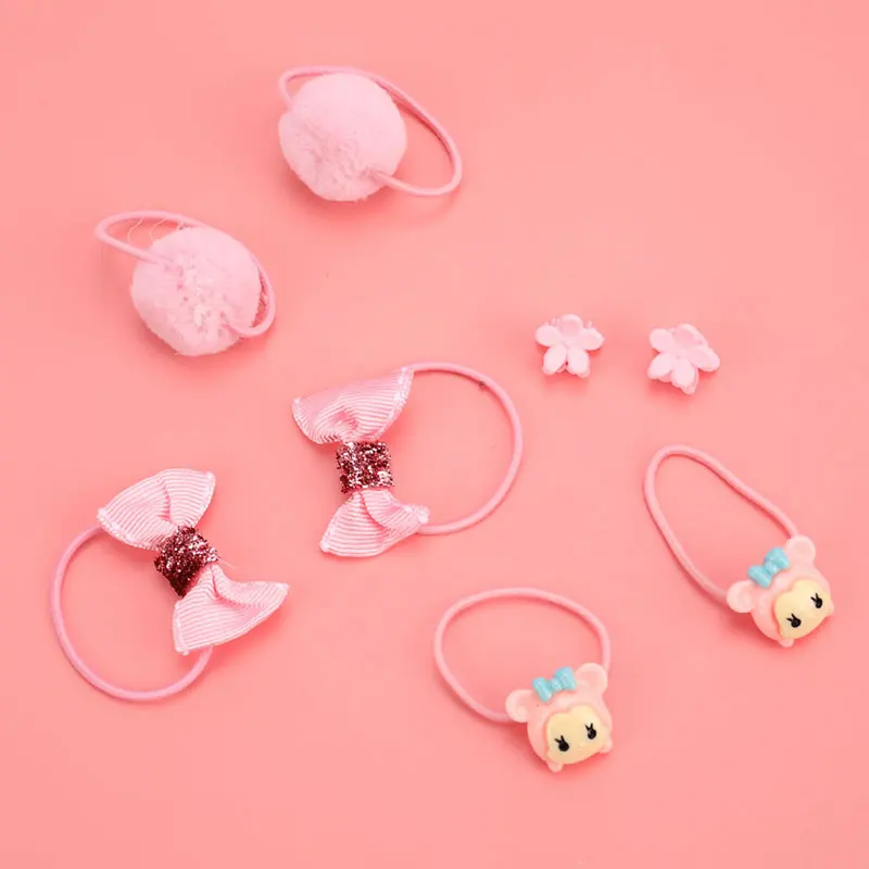 Top Seller 18PCS/SET Bow Flower Animal Hairpins Hair Clip Set Girl Headwear Hair Band Cartoon Elastic Headdress Gift Cute Hair Accessories