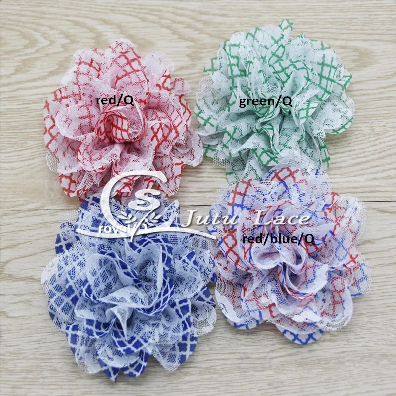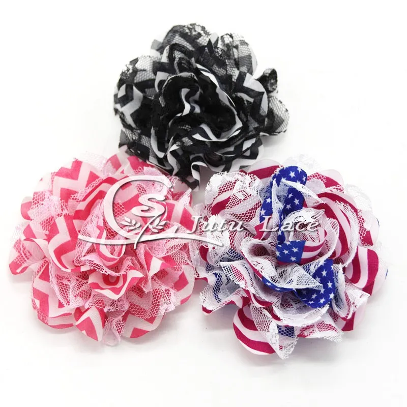 Special 60 pcs/lot 3.75'' print lace chiffon flower shabby chiffon flower for apparel hair headwear accessories