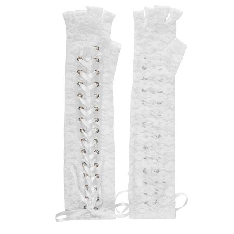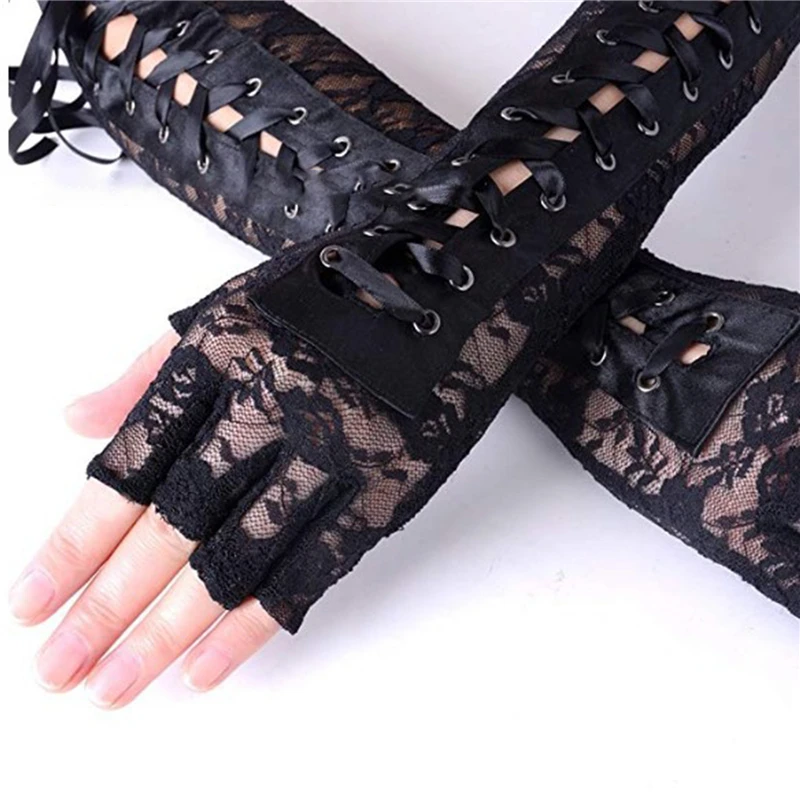 Cheap Party Ladies Lace Gloves Half Finger Bandage Hollow Out Female Mitten Fashion Prom Women Gloves Clothing Accessories