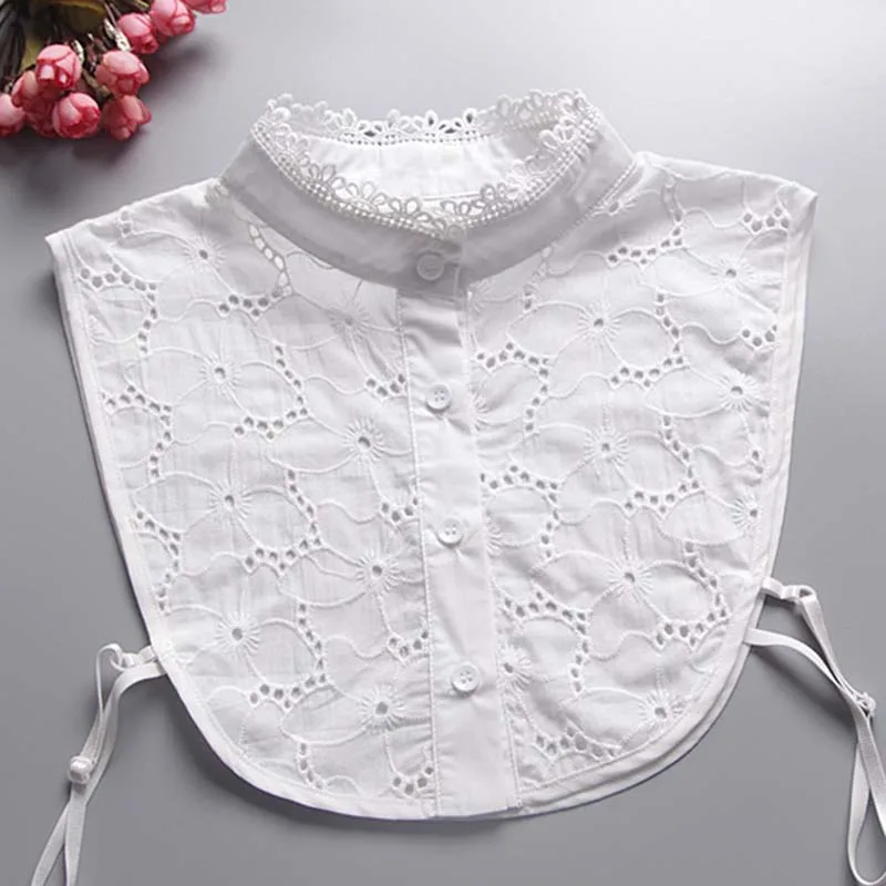Best Spring And Summer New Fashion White Lace Upright Collar Detachable Hollow Wavy Neck Wild Fake Tie Clothing Accessories