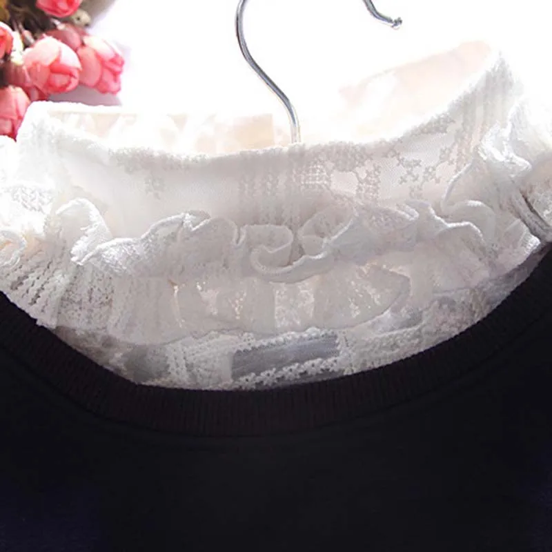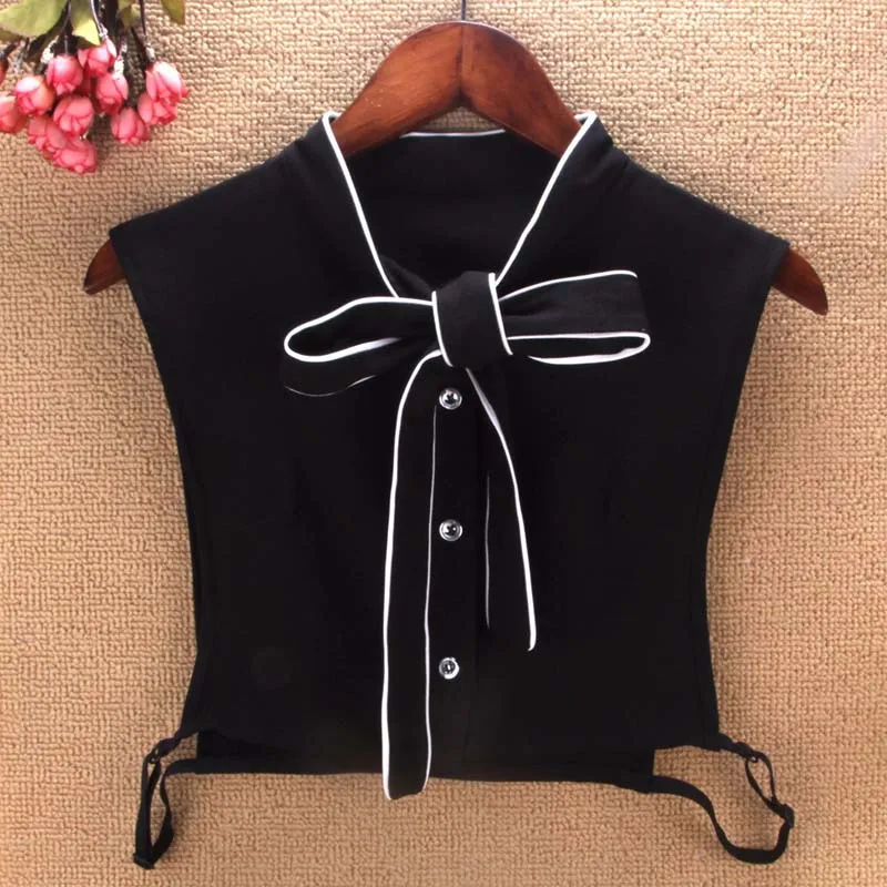 Buy Now White Lace Pleated Lace And Black White Edge Bow Stand Collar Fake Blouse women's Clothing Accessories