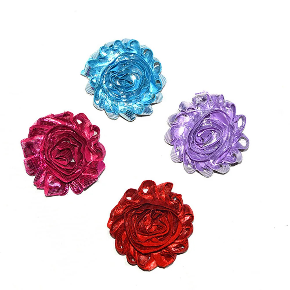 Discount 100 pcs/lot 2.5'' shabby metallic shiny flower shiny chiffon flower for hair apparel accessories